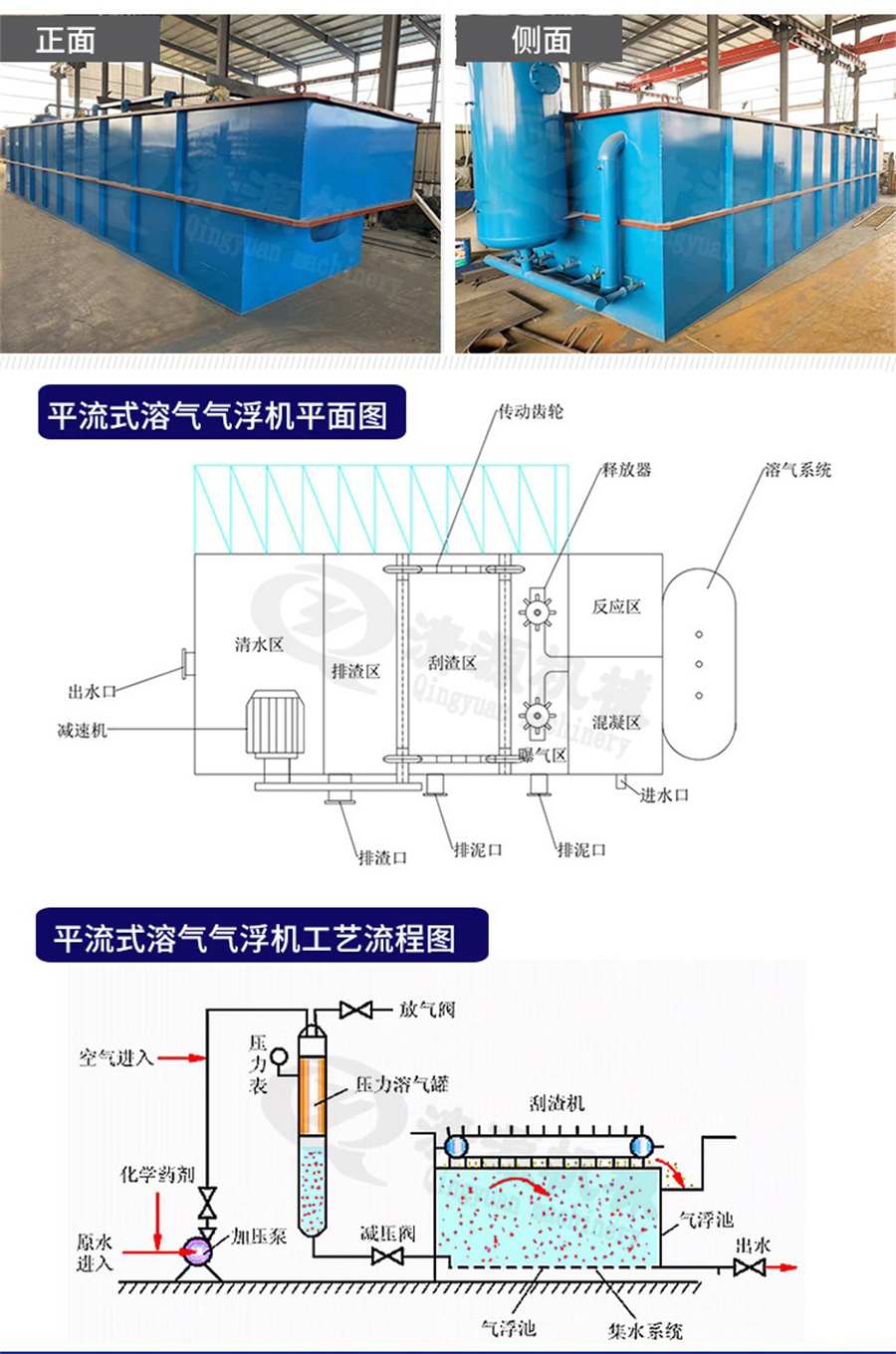 平流式溶氣氣浮機是污水處理行業(yè)常用的一種固液分離設備,能夠有效的去除污水中的懸浮物、油脂、膠類(lèi)物質(zhì),是污水前期處理的主要設備。