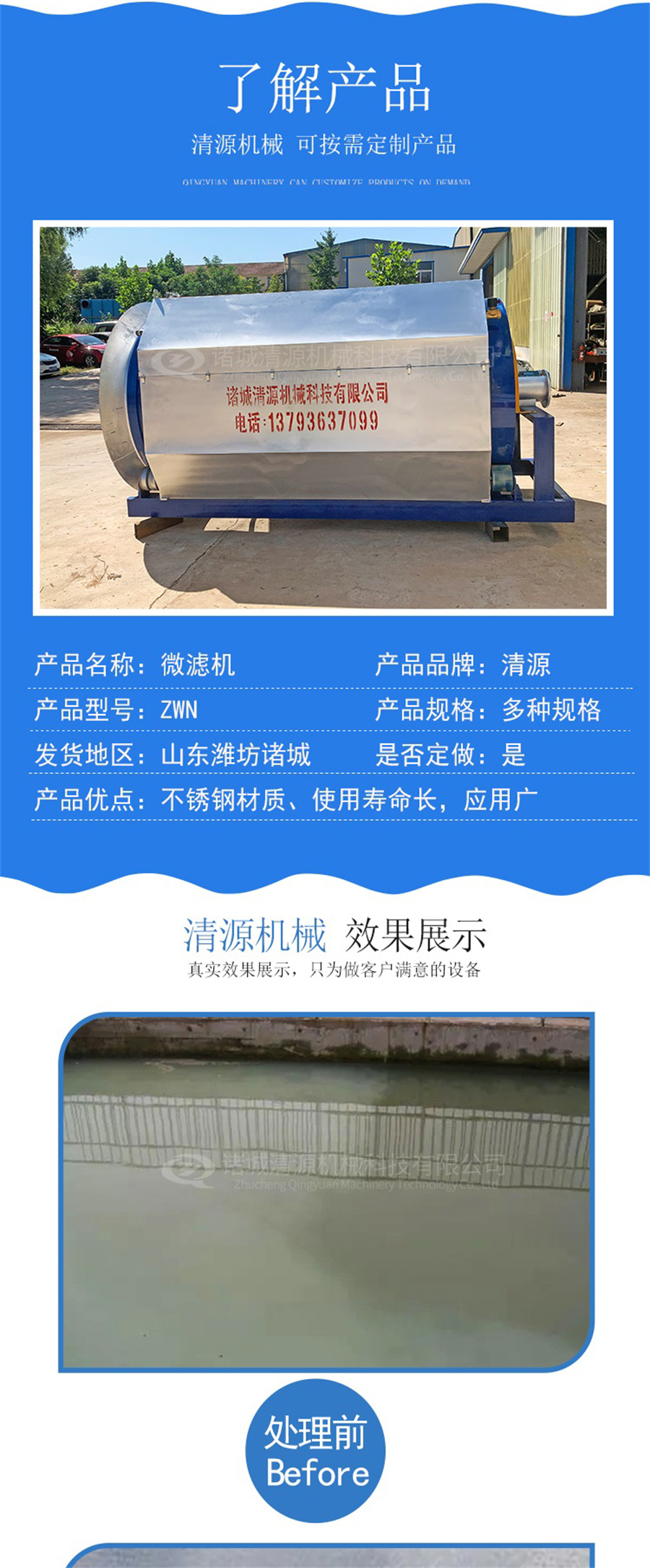 此外,我公司不僅生產(chǎn)微濾機,還生產(chǎn)污泥脫水機、地埋式污水處理設備、固液分離設備、污泥壓濾機、造紙設備等其他設備,歡迎咨詢(xún)訂購!