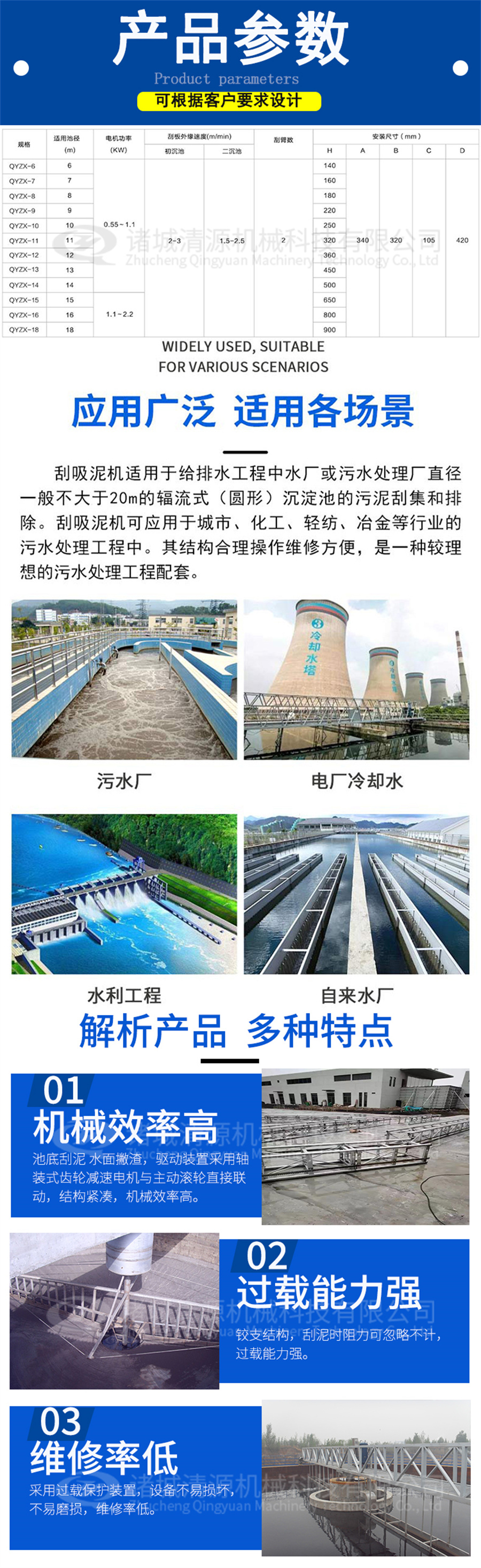 此外,我公司還生產(chǎn)桁車(chē)式提耙刮泥機、地埋式污水處理設備、氣浮機、污泥壓濾機、固液分離設備、造紙設備等其他設備,歡迎訂購聯(lián)系!