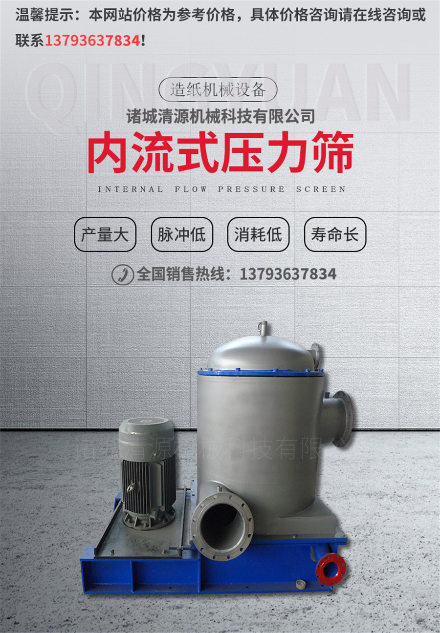 2、篩鼓使用壽命長(cháng):由于紙漿進(jìn)入壓力篩后,紙漿的重雜質(zhì)受離心作用已被分離,故減輕了粗雜質(zhì)對旋翼和篩鼓的沖擊和磨損。這樣就延長(cháng)了內流式壓力篩的重要部件——篩鼓的使用壽命。