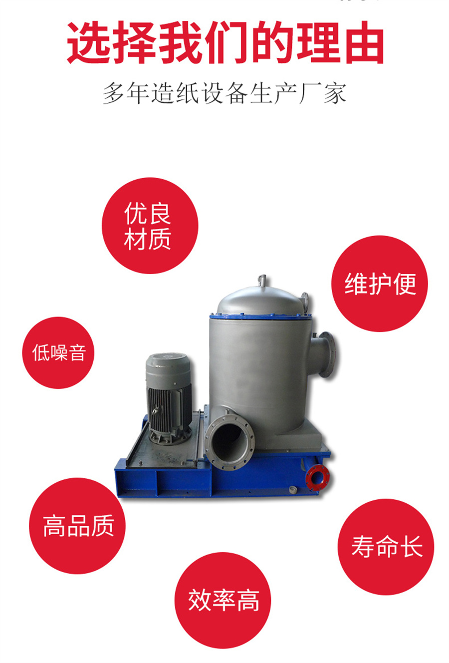 3、篩漿時(shí)不堵塞:紙漿自上而下均勻篩選,幾乎沒(méi)有增稠現象,雜質(zhì)始終遠離篩鼓,所以篩鼓縫不易被堵塞。