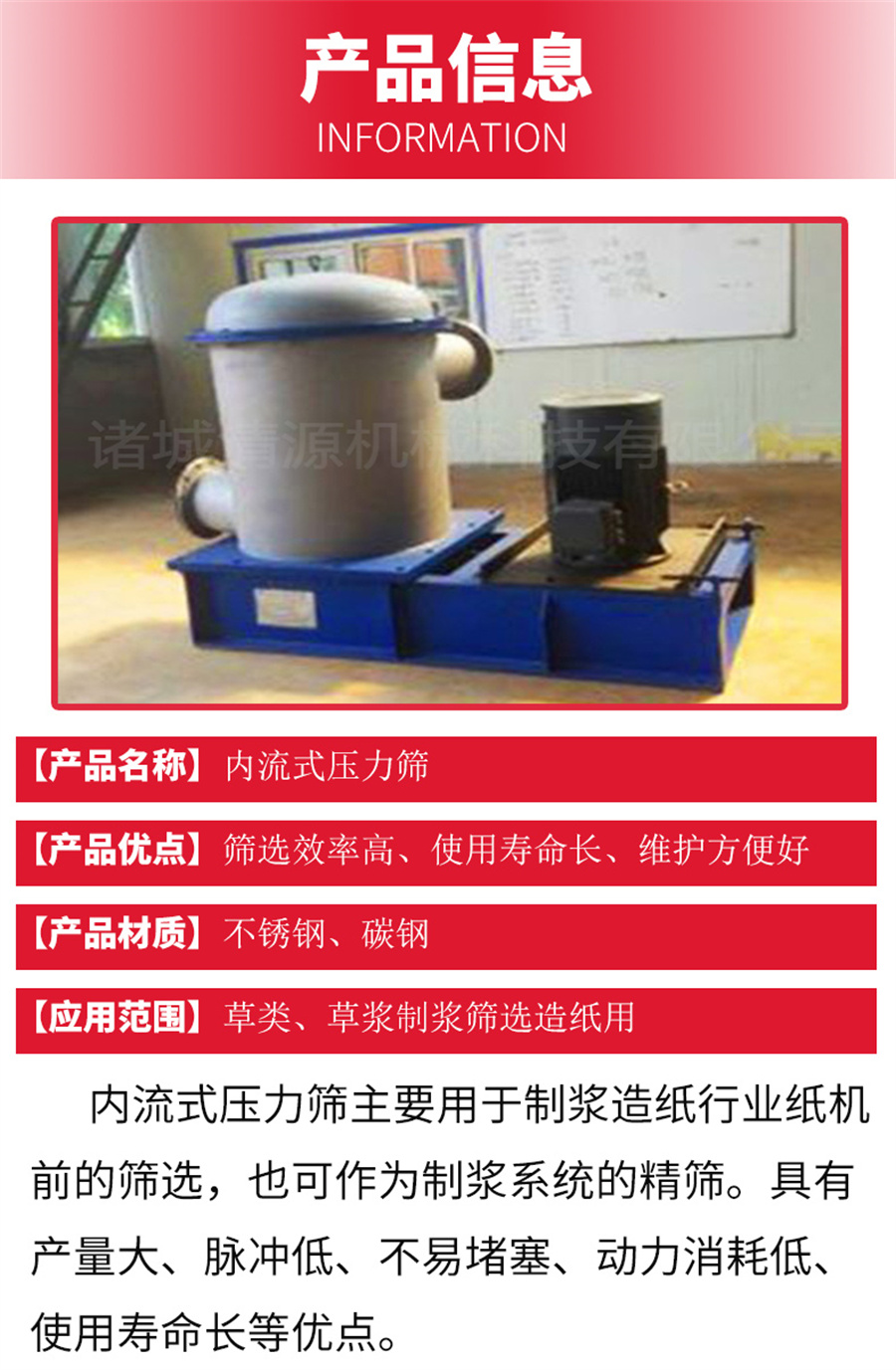 一、內流式壓力篩的主要特點(diǎn)