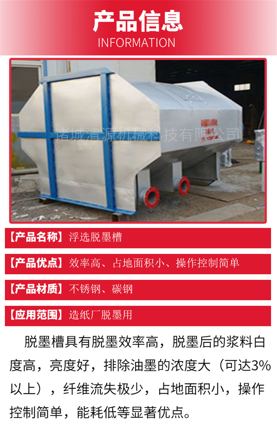 此外,我公司不僅生產(chǎn)脫墨槽,還生產(chǎn)浮選機組、地埋式污水處理設備、氣浮機、污泥壓濾機、造紙設備等其他設備,歡迎咨詢(xún)訂購!